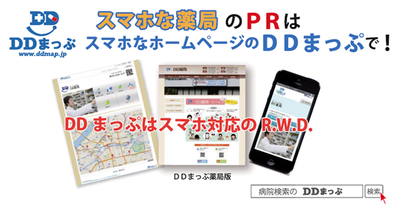 また、ホームページをお持ちの方は、ページ上でアプリの宣伝も効果的です。ホームページをお持ちでない方は、この機会に開設されてはいかがでしょうか? 薬局の雰囲気が伝わるホームページは求人にも効果的ですので是非一度ご検討下さい。(DDまっぷホームページ)