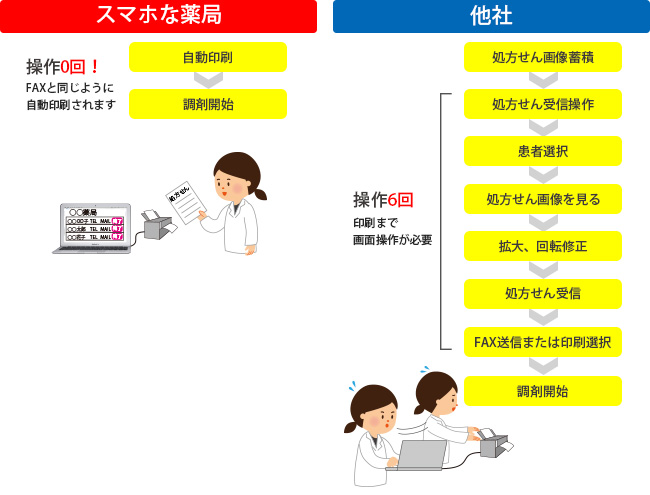 他社のシステムは処方せん印刷に人手と時間が必要。